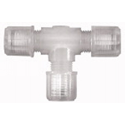 T-Schlauchverbindung, für Schlauch 8/10 mm, Arbeitsdruck max. 10 bar (20 °C) / max. 1 bar (170 °C), PFA. Perfluoralkoxy (PFA): ein Fluorkunststoff, der die gleiche chemische Resistenz wie PTFE hat, aber bedeutend höhere Festigkeitswerte aufweist und für Temperaturen von max. 200 °C geeignet ist.