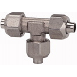 T-Verbinder, für Schlauch 10/8 mm, SW1 16, SW2 12, Druckbereich max. 25 bar, Temperatur -40 °C bis 200 °C, Edelstahl 1.4404. Ohne Dichtungen. Für den Einsatz bei aggressiven Medien und bei hohen Temperaturen.