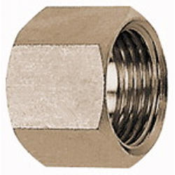 Sechskant-Überwurfmutter, G 1, für Tüllengröße LW 25, SW 38, Messing vern., Arbeitsdruck max. 25 bar, Betriebstemp. max. 150 °C. Für Luft, Wasser, Öl, Dampf etc. einsetzbar.